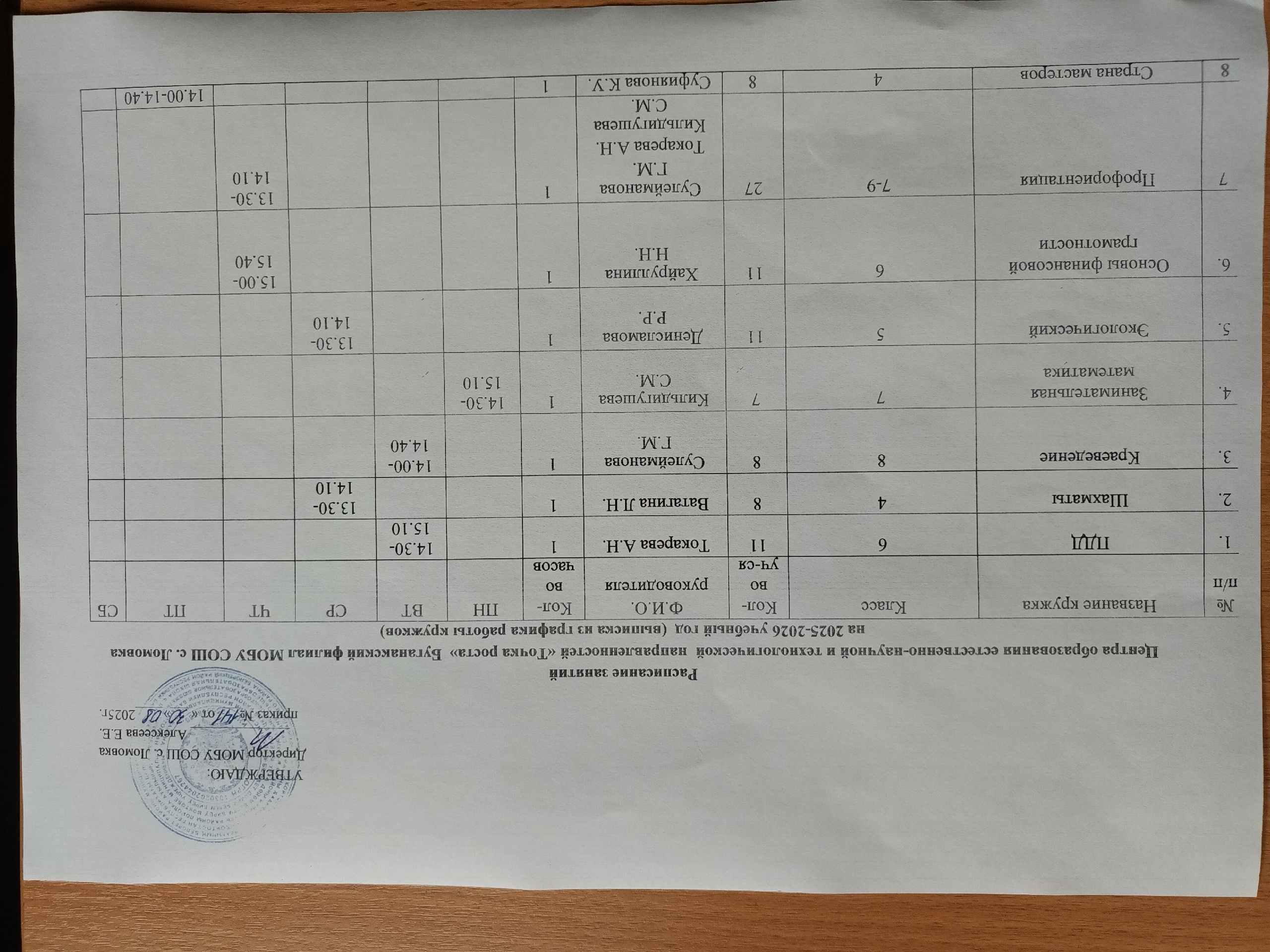Расписание занятий на 2025-2026 учебный год